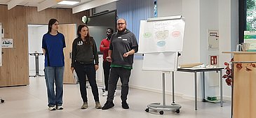 Im Anschluss präsentierten die Schülerinnen und Schüler ihre Arbeitsergebnisse vor den geladenen Gästen, Lehrkräften und Schülerinnen und Schülern des BSZG Erlangen.